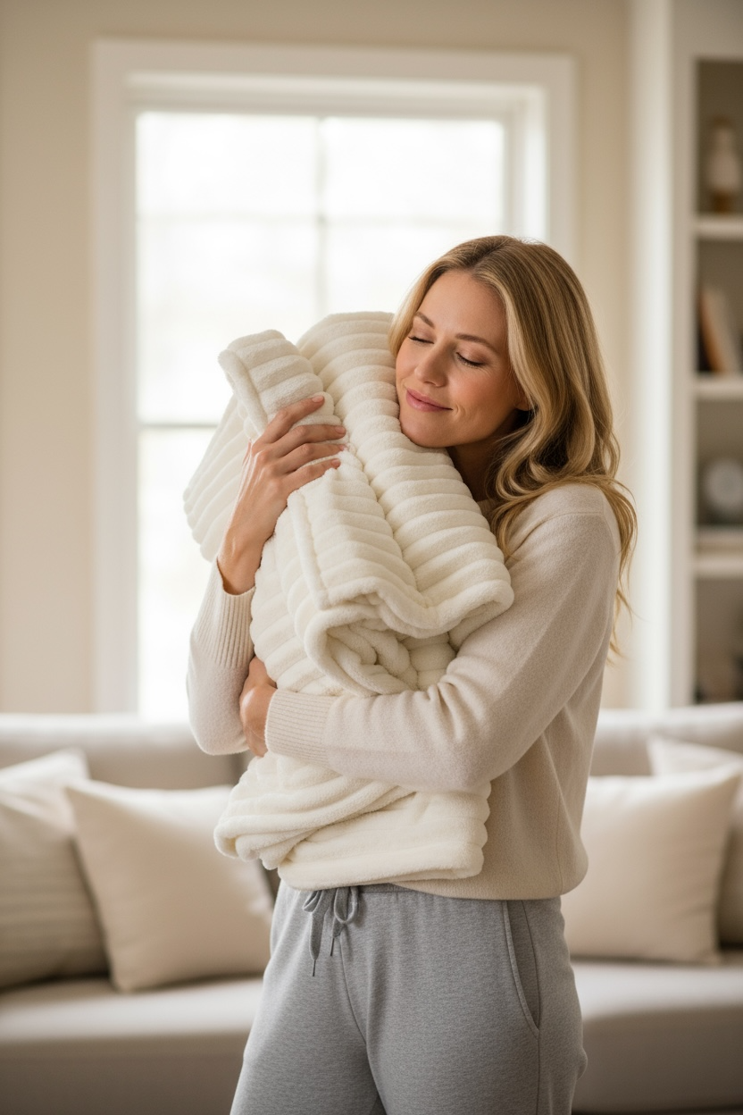 Wrap yourself in stillness. Each blanket is designed to quiet the noise of the day — helping your body unwind and your mind find peace.